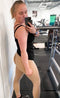 Efter at have læst anmeldelser fra andre købte jeg tightsene i en størrelse større end jeg plejer at bruge i tights fra Famme. Selv med en størrelse større end normalt var det svært at komme ind i dem, og når de endelig var på, føltes det som om de ikke ville være behagelige at træne i. Jeg var simpelthen bange for, at de ville revne, hvis jeg bevægede mig. Jeg sendte dem tilbage og købte i stedet de almindelige peach scrunch tights, hvor jeg kan træne komfortabelt i min normale størrelse. Jeg købte mine i sort/grøn, som var utrolig flot i farven, så jeg synes, det var rigtig ærgerligt, at tightsene ikke passede.